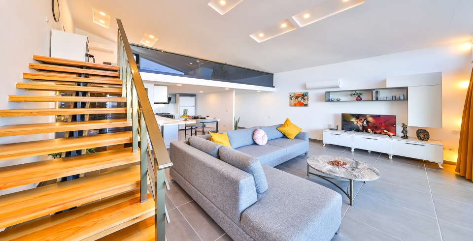 Salon : Salon içerisinde oturma grubu, TV, klima, sehpa,banyo ve tuvalet bulunmaktadır.Jakuzili terasa çıkış yapılabilmektedir.