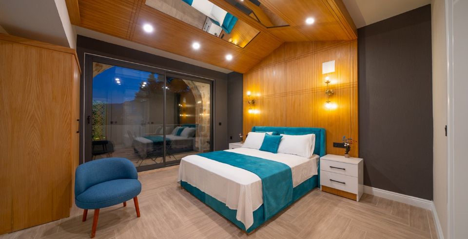 4. Yatak Odası : Çift kişilik yatak, komodin, klima, abajur, masa ve sandalye, banyo ve lavabo bulunmaktadır.