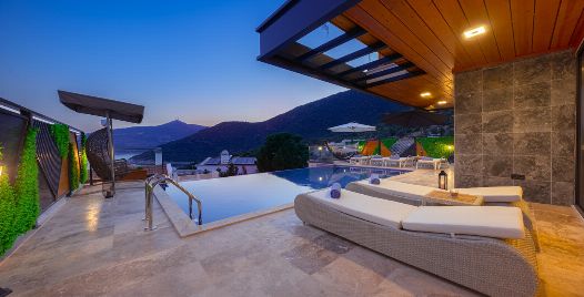 Villamız Kalkan'ın Kalamar bölgesinde konumlanmaktadır. 4 Yatak odalı 8 Kişilik kapasiteye sahip olan villamız mükemmel deniz ve doğa manzarasına sahiptir. Halk plajına yürüme mesafesinde olan Villa Esra Evi ultra lüks bir dizayna sahiptir. Ayrıca en süit yatak odasında jakuzi de bulunmakta olup siz değerli müşterilerimize oldukça konforlu bir tatil sunmaktadır. Villamızın en üst katında küçük otantik bahçe, oturma alanı ve salıncak bulunmaktadır. Özel havuzun hemen yan tarafında oturma alanı ve barbekü de bulunmaktadır. Kiralık yazlık villamızın oldukça konforlu oturma koltuk takımı, TV ünitesi de bulunmaktadır. Villamız da Kış ayları için ısıtmalı havuzu, zaman geçirmek için ise langırt ve masa tenisi bulunmaktadır. Villamızda ayrıca sauna da mevcuttur.