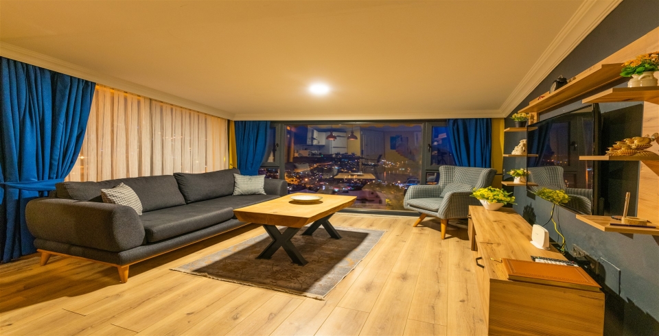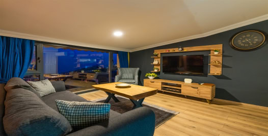 Salon : Salon içerisinde oturma grubu, TV, klima, sehpa bulunmaktadır. Havuz terasına çıkış yapılabilmektedir.
