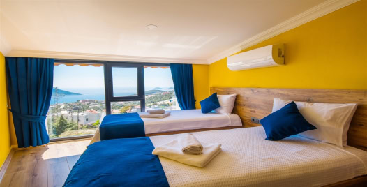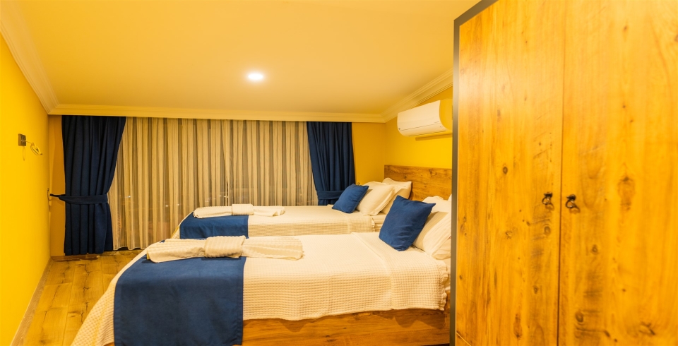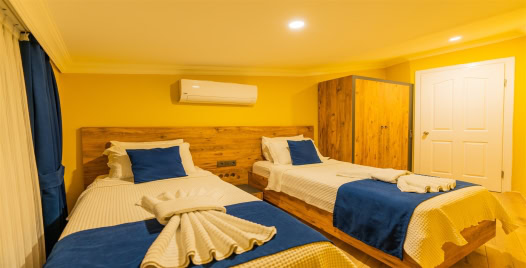 2. Yatak Odası : 2 adet tek kişilik yatak, klima, komodin, elbise dolabı, makyaj masası bulunmaktadır.