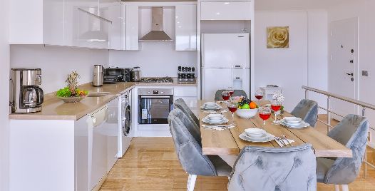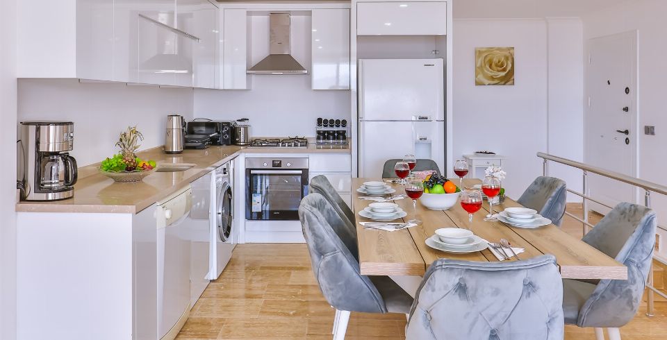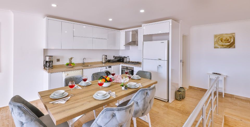 Mutfak: Villamızın mutfağında buzdolabı bulaşık makinası, çamaşır makinası, 4'lü ocak, ketıl, mikro dalga fırın, filtre kahve makinası yemek takımı bulunmaktadır.