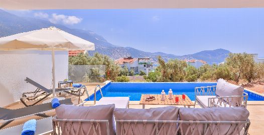 Salon: Villa salonunda konforlu oturma grubu, klima, TV, internet, uydu alıcı, yemek masası, sehpa bulunmaktadır.