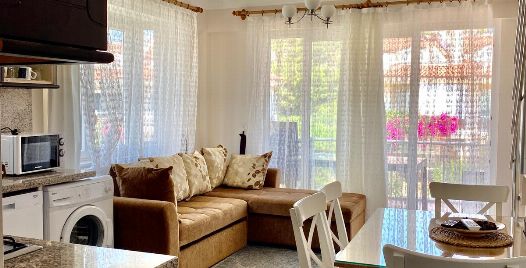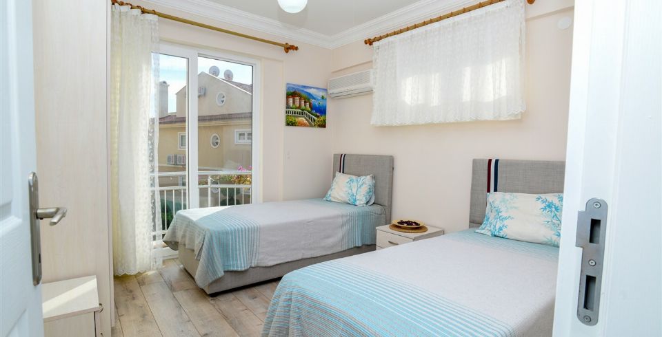 Kiralık yazlık apartımız Fethiye Çalış bölgesinde yer almaktadır. 2 yatak odalı 4 kişilik kapasiteye sahiptir. Ortak kullanım havuzu ve çocuk havuzu bulunmaktadır. Hem balayı çiftlerine hem de çekirdek aileler özel olarak dizayn edilmiştir. Denize yürüme mesafesinde olan apartımız ortak kullanım şezlong şemsiye bulunmaktadır. Ayrıca tesiste hamam sauna bulunmaktadır. Tesis içerisinde çocuklar için oyun alanı bulunmaktadır. Ekonomik tatil için sizleri bekliyoruz.