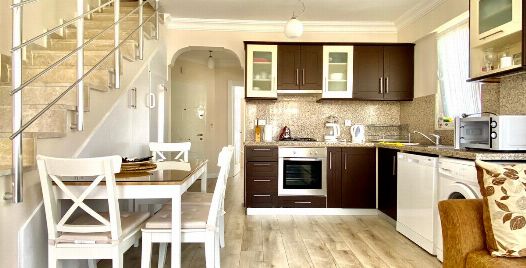 Mutfak : Modern Amerikan mutfak, buzdolabı, bulaşık makinesi, çamaşır makinesi, su sebili, fırın, mikrodalga fırın, 4’lü ocak, elektrikli su ısıtıcısı, 6 kişilik yemek takımı, tava, tencereler, çatal, bıçak vs. bulunmaktadır.