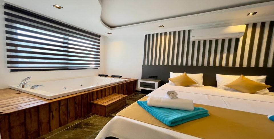 Suit Asil, Kalkan'ın huzur dolu Akbel bölgesinde, zarif tasarımı ve lüks detaylarıyla unutulmaz bir tatil sunuyor. 2 kişilik kapasitesiyle çiftler için tasarlanmış olan bu özel suit, konfor ve mahremiyeti ön planda tutuyor. Kapalı havuzu sayesinde dört mevsim tatil keyfi sunarken, yatak odasında yer alan jakuzisi romantik anlar yaşamanız için tasarlandı. Modern dekorasyonu ve şık detaylarıyla Suit Asil, özel ve bağımsız bir tatil deneyimi arayan çiftler için mükemmel bir tercih.