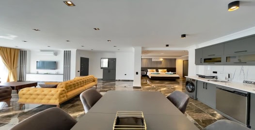 Mutfak : Modern Amerikan Mutfak , buzdolabı , çamaşır makinesi , bulaşık makinesi , ankastre fırın , mikrodalga fırın , ankastre fırın seti , tost makinesi , elektrikli su ısıtıcısı , yemek takımı , çatal bıçak seti , tavalar , tencereler , bardaklar bulunmaktadır.