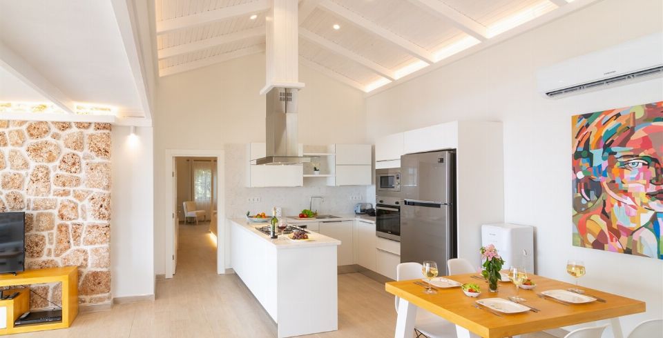 Mutfak : Villamızın geniş Amerikan mutfağı ile sizlere kendi evinizin mutfağı gibi hissettirecek. Ayrıca mutfakta klima, bulaşık makinası, buzdolabı, çamaşır makinası, mikrodalga fırın, tost makinası, ekmek kızartma, su ısıtıcısı, fırın, 4'lü ocak seti ve 4 kişilik geniş yemek masası ile tava tencere vb. mutfak araç gereçlerini kullanma fırsatını sizlere sunuyoruz.