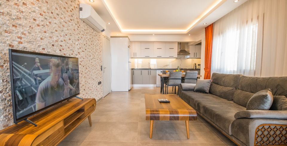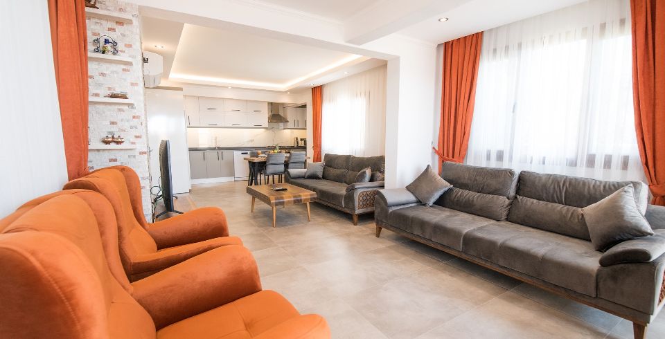 Salon : Salonunda oturma gurubu, yemek masası, uydu alıcı, TV, klima bulunmaktadır.