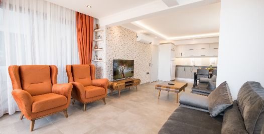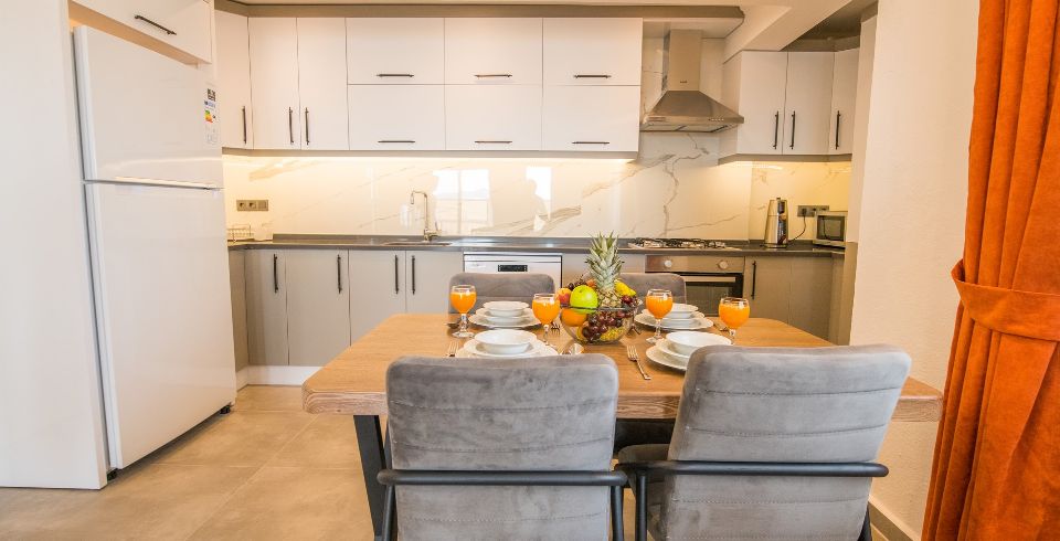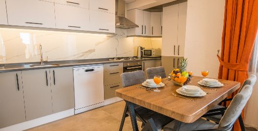 Mutfak : Apartımızın amerikan mutfağında yemek takımı, bulaşık makinası, buzdolabı, çamaşır makinası, ketıl, ekmek kızartma makinası, 4 lü ocak, fırın bulunmaktadır.