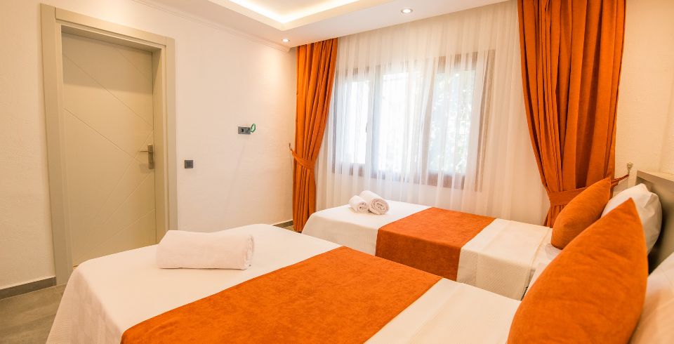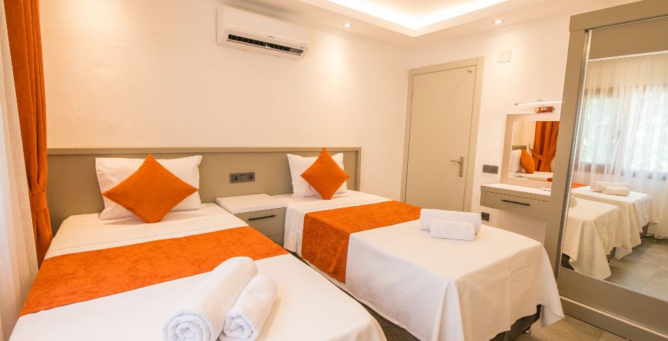 2. Yatak Odası : 2 tek kişilik yatak ,klima, komodin, makyaj masası, banyo ve tuvalet bulunmaktadır.
