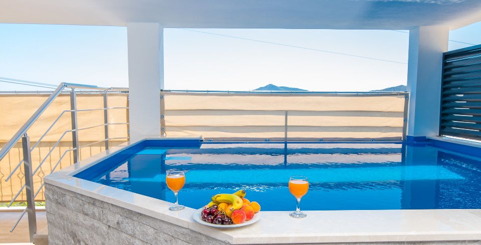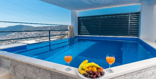 Kiralık yazlık olan süit apartımız Kalkan Kördere bölgesinde bulunmaktadır. 2 Yatak odalı 4 kişilik kapasiteye sahip özel yüzme havuzludur. Muhteşem deniz manzarasına sahip olan süit sunset plaja sadece 2 km uzaklığında olup merkeze ve restoranlara da bir o kadar yakındır.