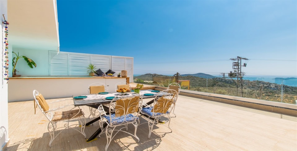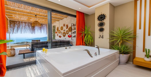 Teras: Özel jakuzi havuzu, güneşlenme alanı, barbekü alanı, oturma alanı, yemek masası bulunmaktadır.