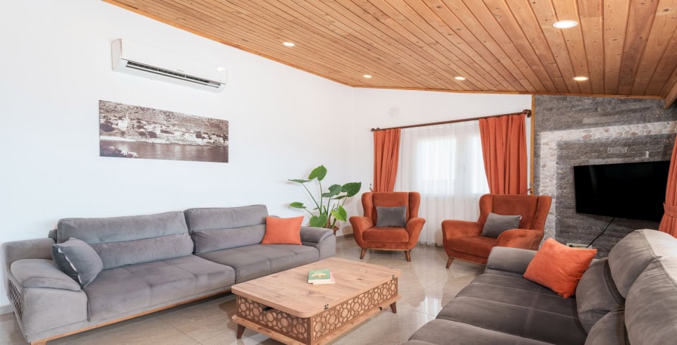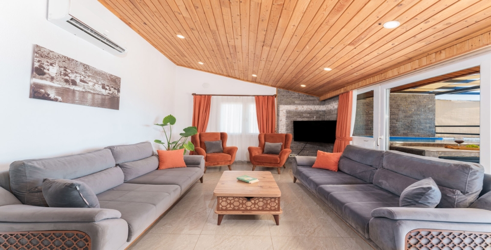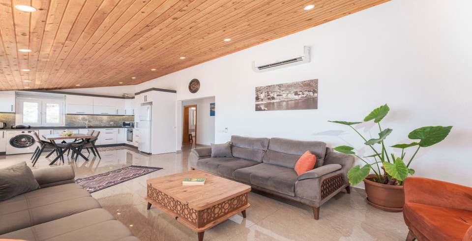 Salon : Salonunda oturma gurubu, yemek masası, uydu alıcı, TV, klima bulunmaktadır.