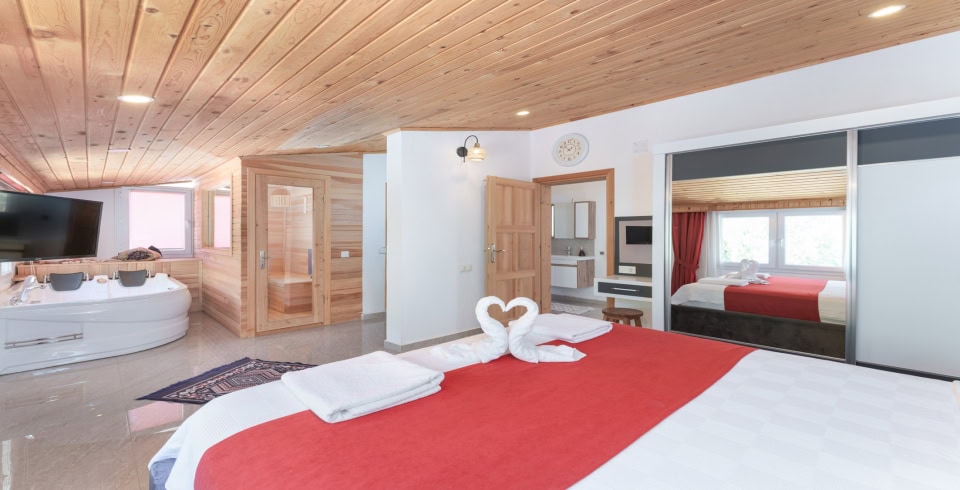 1. Yatak Odası : Çift Kişilik yatak, klima, jakuzi, sauna, komodin, makyaj masası, banyo ve tuvalet bulunmaktadır.