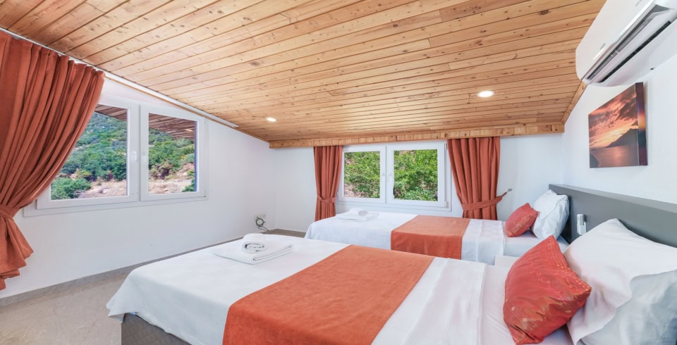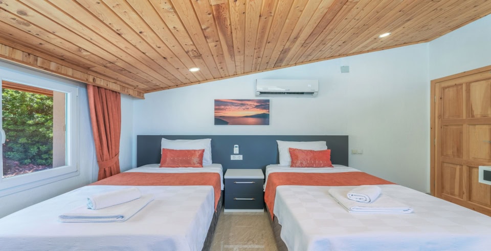 2. Yatak Odası : 2 tek kişilik yatak, klima, komodin, makyaj masası, banyo ve tuvalet bulunmaktadır.