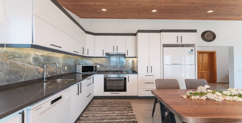 Mutfak : Apartımızın Amerikan mutfağında yemek takımı, bulaşık makinası, buzdolabı, çamaşır makinası, kettle, ekmek kızartma makinası, 4'lü ocak, fırın bulunmaktadır.