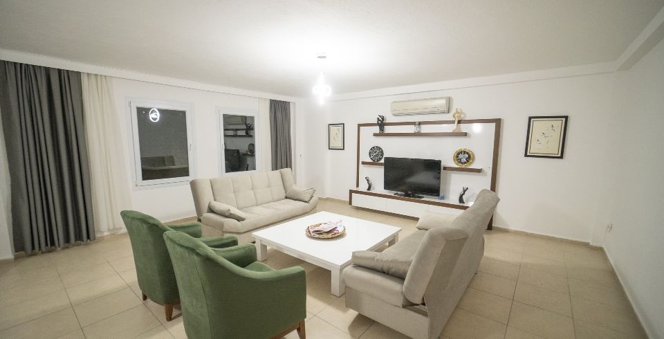 Salon: Salon içerisinde modern oturma grubu, uydu alıcı, LCD TV, internet için modem, klima, WC ve havuz terasına çıkış bulunmaktadır.