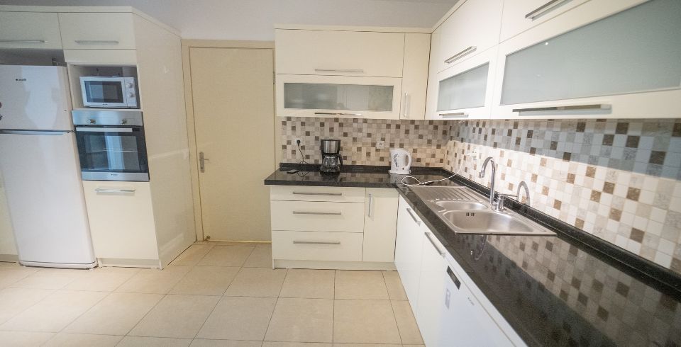 Mutfak: Amerikan mutfak içerisinde buzdolabı, bulaşık makinası, çamaşır makinası, yemek masası, mikrodalga fırın, 4’lü ocak, davlumbaz, fırın, elektrikli su ısıtıcı, yemek takımı, tava ve tencereler, çatal, bıçak takımı bulunmaktadır.