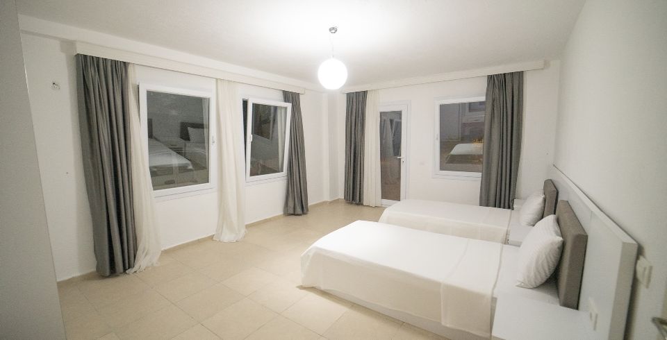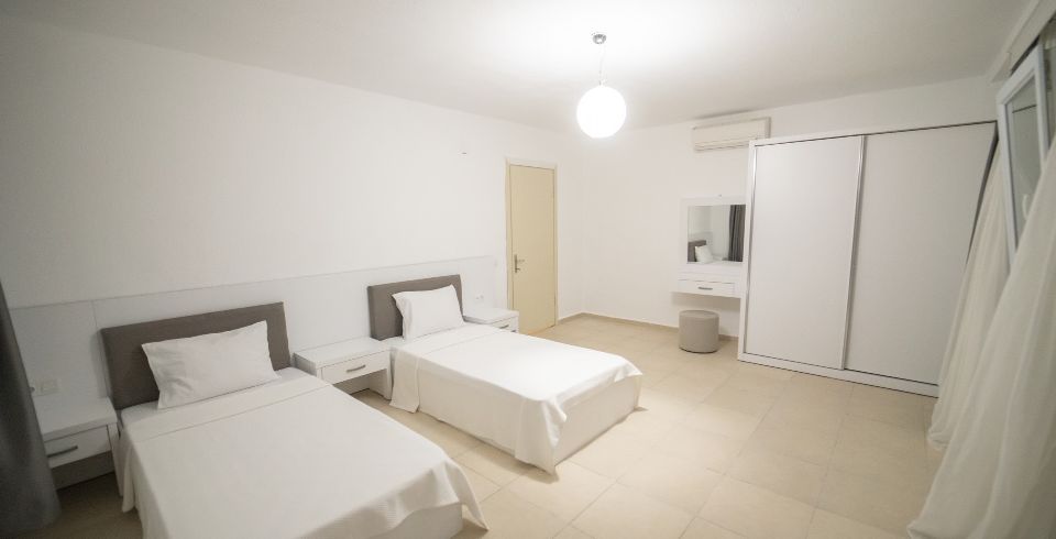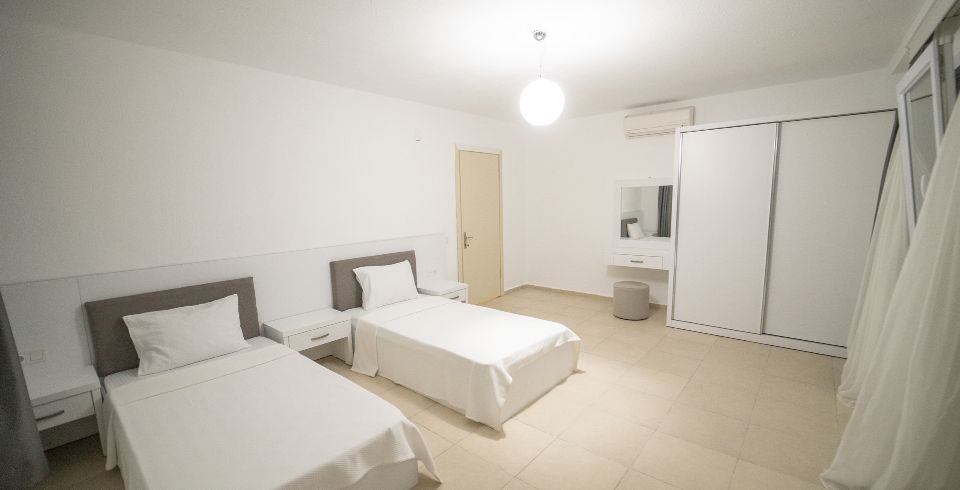 5. Yatak Odası: 2 adet tek kişilik yatak, komodin, makyaj masası, elbise dolabı, klima, ortak banyo tuvalet bulunmaktadır.