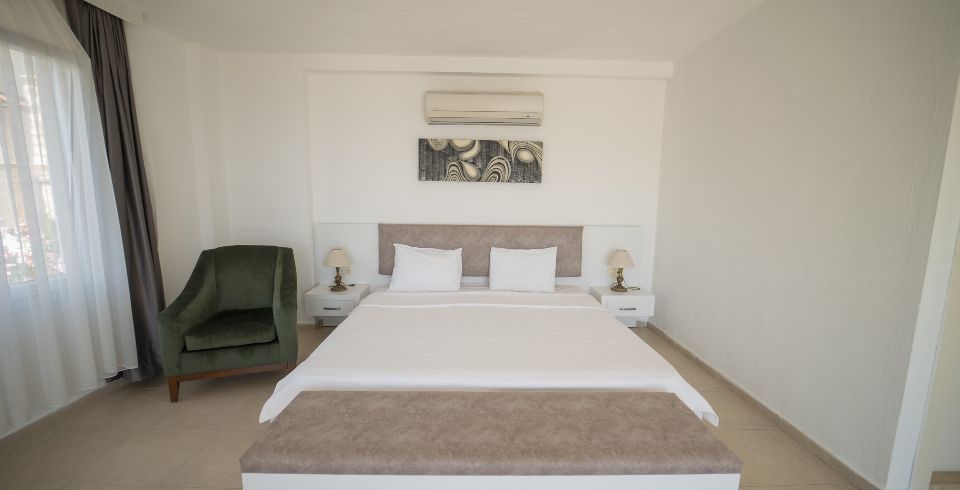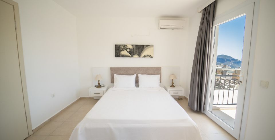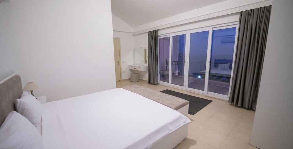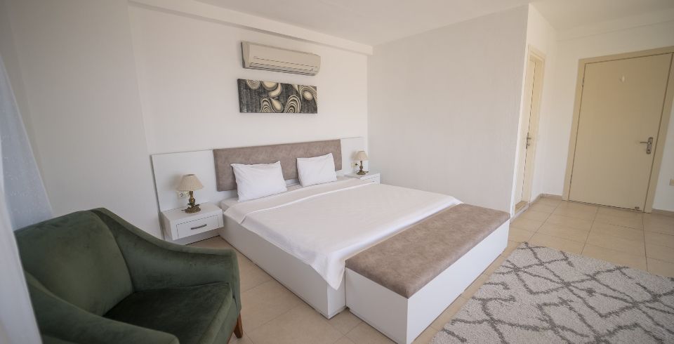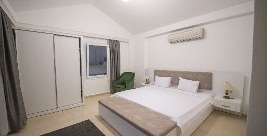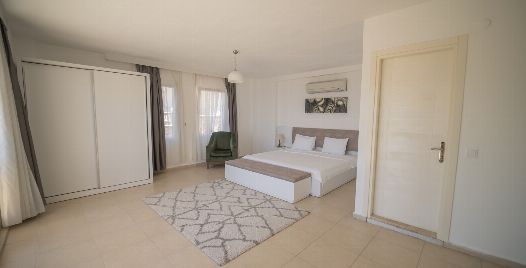 4. Yatak Odası: 1 adet çift kişilik yatak, komodin, makyaj masası, elbise dolabı, klima, ve banyo tuvalet bulunmaktadır.