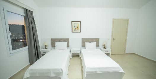 1. Yatak Odası: 2 adet tek kişilik yatak, komodin, makyaj masası, elbise dolabı, klima, ortak banyo tuvalet bulunmaktadır.
