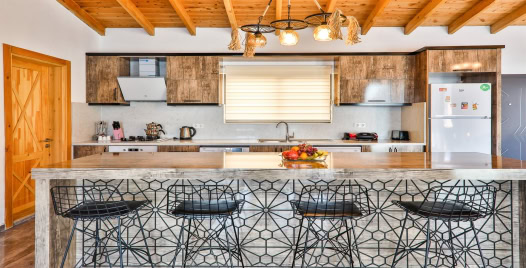 Mutfak : Villamızın geniş Amerikan mutfağı ile sizlere kendi evinizin mutfağı gibi hissettirecek. Ayrıca mutfakta klima, bulaşık makinası, buzdolabı, çamaşır makinası, mikrodalga fırın, tost makinası, ekmek kızartma, su ısıtıcısı, fırın, 4`lü ocak seti ve 4 kişilik geniş yemek masası ile tava tencere vb. mutfak araç gereçlerini kullanma fırsatını sizlere sunuyoruz.
