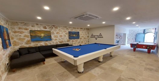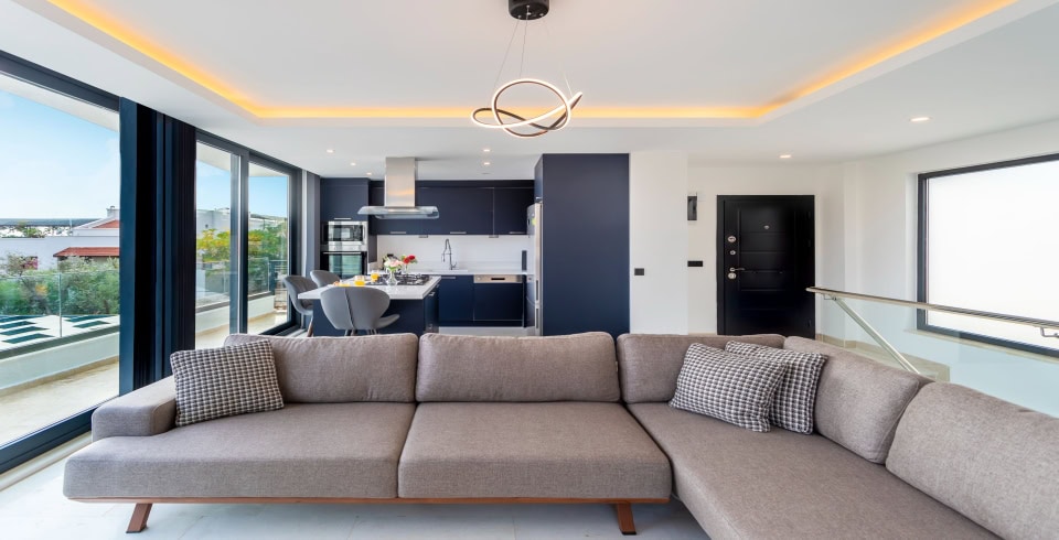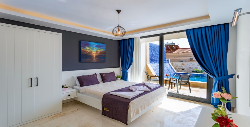 Salon: Geniş ve modern renklerle dekore edilmiş salonun eşsiz deniz ve doğa manzarası bulunmaktadır. Salon içerisinde oturma grubu, uydu TV (LCD), kablosuz internet, klima,6 kişilik yemek masası, havuz terasına çıkış ve ekstra wc bulunmaktadır.