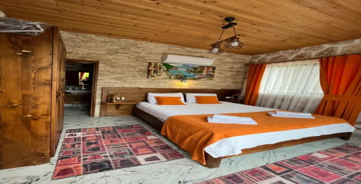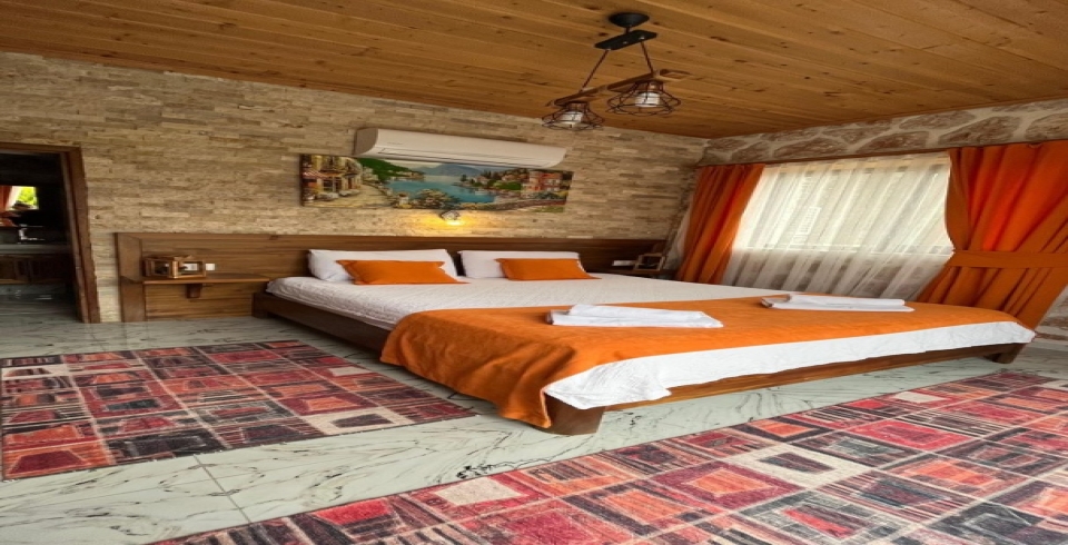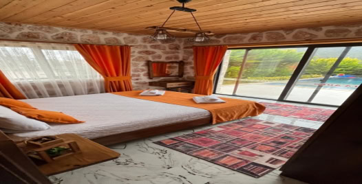 1.Yatak Odası: Doğa ile iç içe olan villamızın yatak odası manzarasında da sizi sonsuz güzel yeşillikler karşılayacak. Eşsiz doğa manzarasına karşı bir de jakuzi bulunmaktadır. Beraberinde çift kişilik yatak, klima, komodin, makyaj masası, banyo ve lavabo bulunmaktadır.
