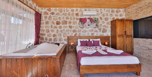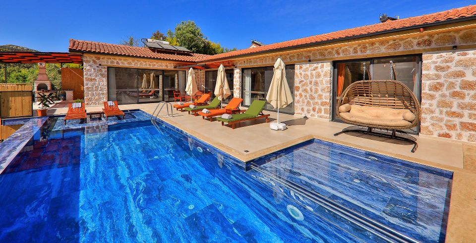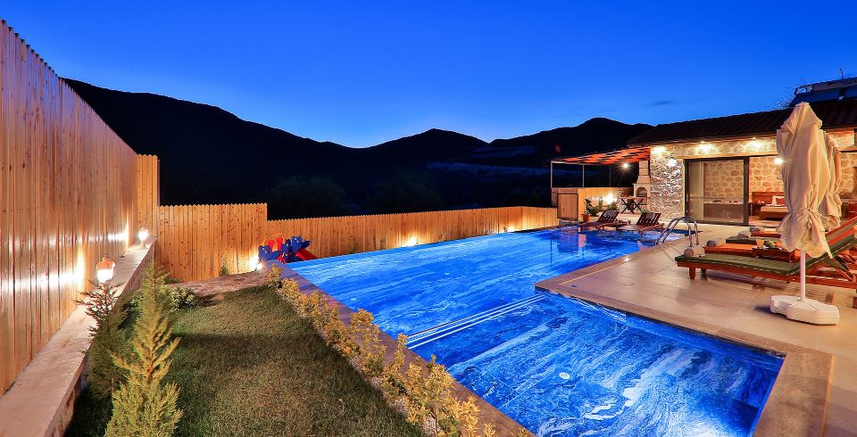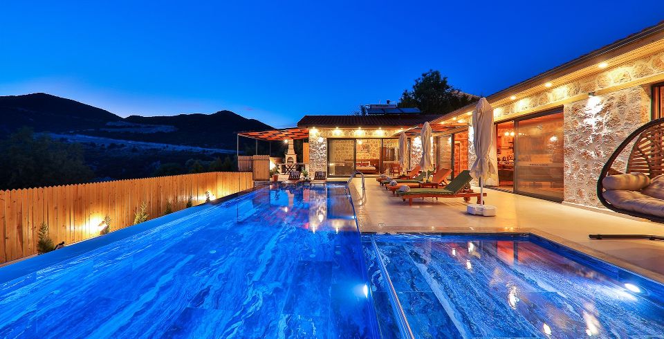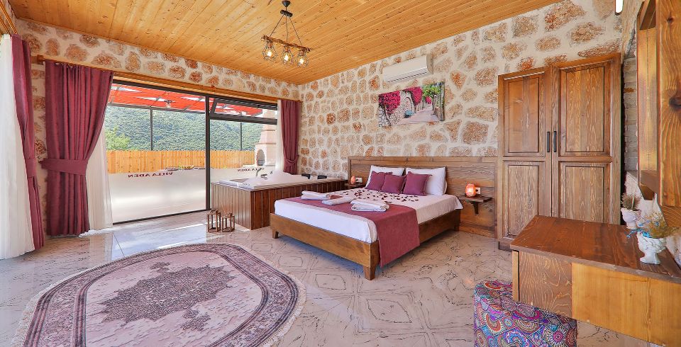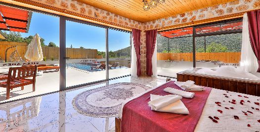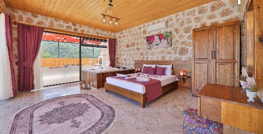 Kalkan Sarıbelen bölgesinde bulunan 2 Yatak odalı 4 kişilik jakuzili olan villamız yeni yapılmış olup muhteşem doğa manzarasına sahiptir. Villamız 2021 yılında yapılmış olup lüks. Muhafazakar aileler uygun olarak dizayn edilmiştir. Taş mimari tasarımı ile adeta göz büyülemektedir konsepte ki villalarımız içerisinde bulunmaktadır. Villamız korunaklı ve muhafazakar ailelere ve balayı çiftleri için son derece ideal bir seçenektir.