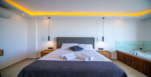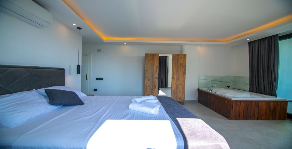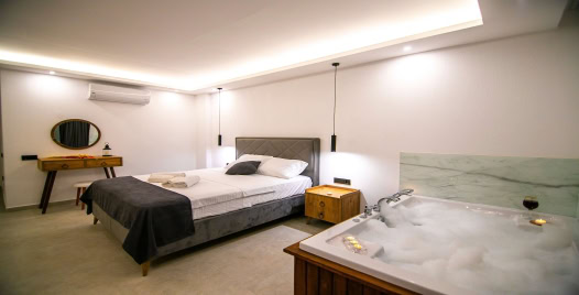 1. Yatak Odası : 1 Adet Çift Kişilik Yatak, 1 Jakuzi, 1 Klima,1 Banyo&Tuvalet bulunmakatdır.