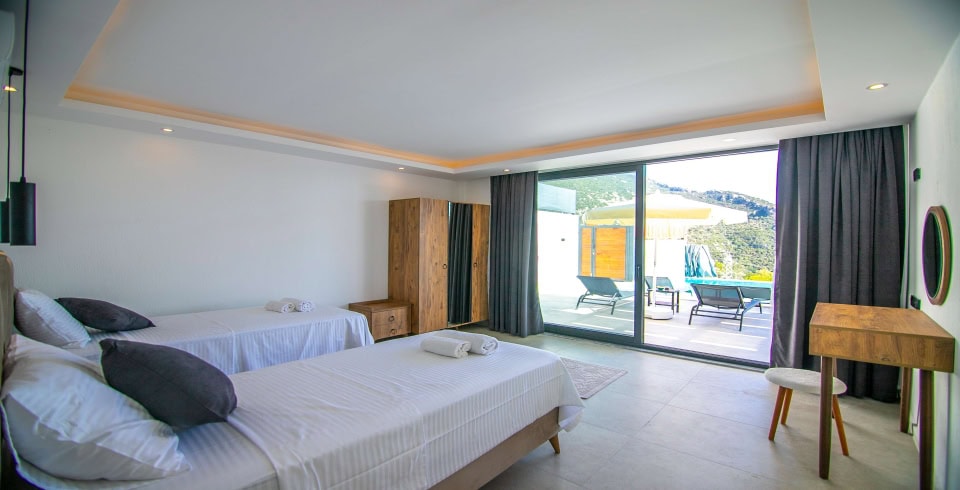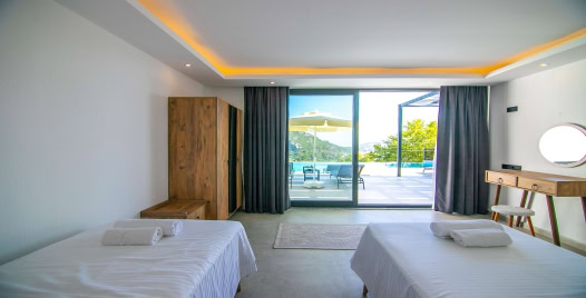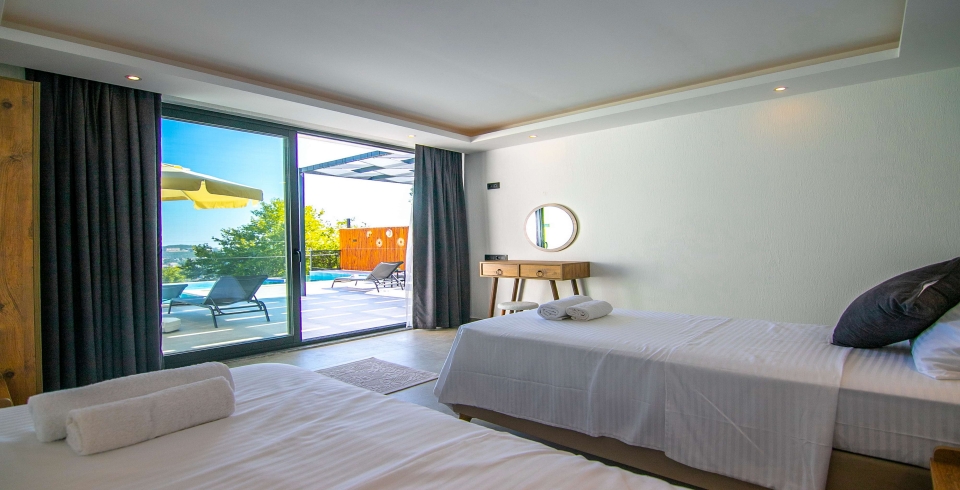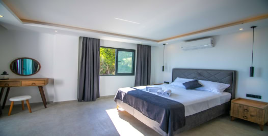 Villamız iki katlı olup, villamızın üç yatak odası ve üç adet banyosu bulunmaktadır. Birinci yatak odası birinci katta olup içerisinde iki adet tek kişilik yatak, banyo ve klima yer almaktadır. İkinci yatak odası ve üçünü yatak odası ikinci katta olup ikinci yatak odası içerisinde bir adet çift kişilik yatak, banyo, klima ve jakuzi bulunmaktadır. Üçüncü yatak odası içerisinde ise bir adet çift kişilik yatak, klima, banyo, ve jakuzi bulunmaktadır. Salon içerisinde ise mutfak, oturma grubu, televizyon, wc ve klima mevcuttur.