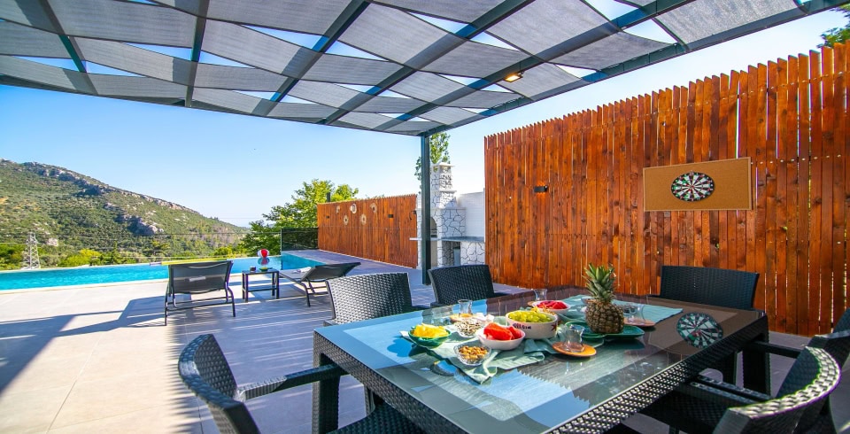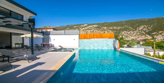 Villa Aden Deluxe, Kalkan İslamlar'da konumlanan, eşsiz doğa manzaralı, özel havuzu tam korunaklı villamızdır. Modern bir mimariyle dekore edilmiş olan villamız, Geniş aileler ve balayı misafirlerimiz için oldukça idealdir.