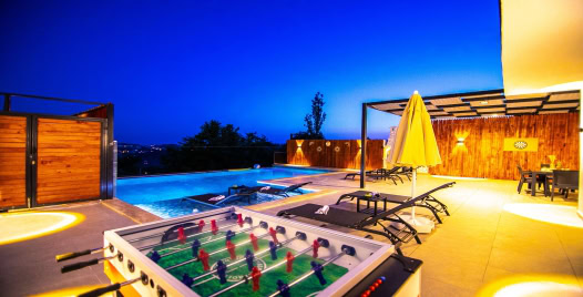 Ayrıca villamız içerisinde bulunan eğlence imkanları langırt, dart, ve çocuk kaydırağı sayesinde keyifli vakit geçirebilirsiniz.