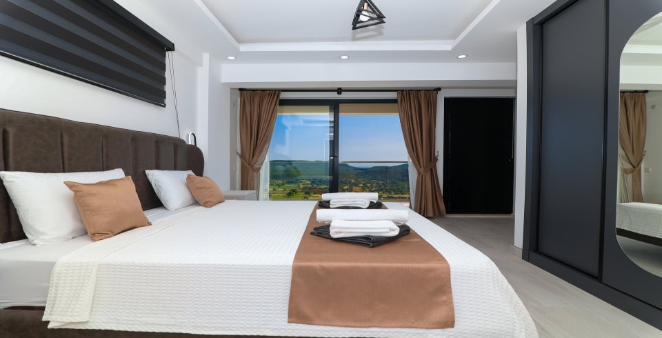 2.Yatak Odası: Çift kişilik yatak, komodin, klima elbise dolabı, TV, tuvalet ve banyo bulunmaktadır.
