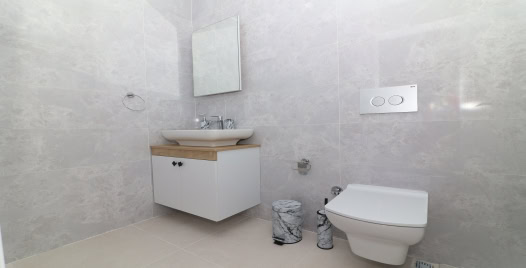 Salon: Özenle döşenmiş salon, modern koltuklar, 5 kişilik yemek masası, LCD TV ve klima bulunmaktadır.