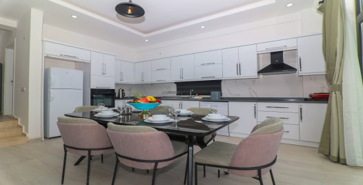 Mutfak: Açık planlı mutfak, 6 kişiye yetecek kadar mutfak malzemeleri, buzdolabı, fırın, ocak, mikrodalga fırın, bulaşık makinesi, çamaşır makinesi, tost makinesi, kettle ve çaydanlık bulunmaktadır..
