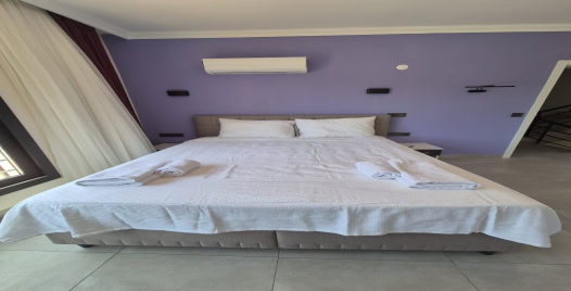 1.Yatak Odası: Çift kişilik yatak,jakuzi, komodin, elbise dolabı,makyaj masası, klima, banyo ve tuvalet bulunmaktadır.