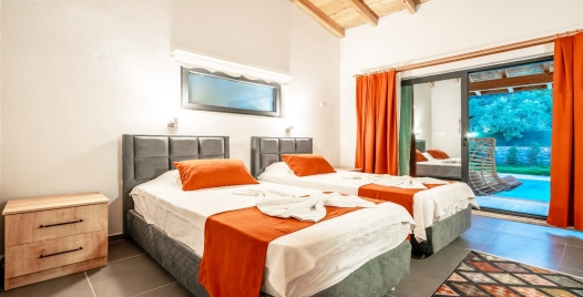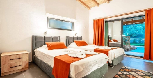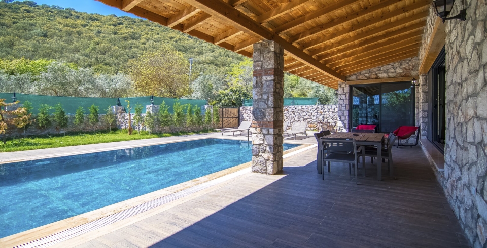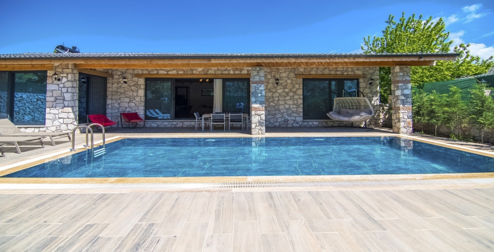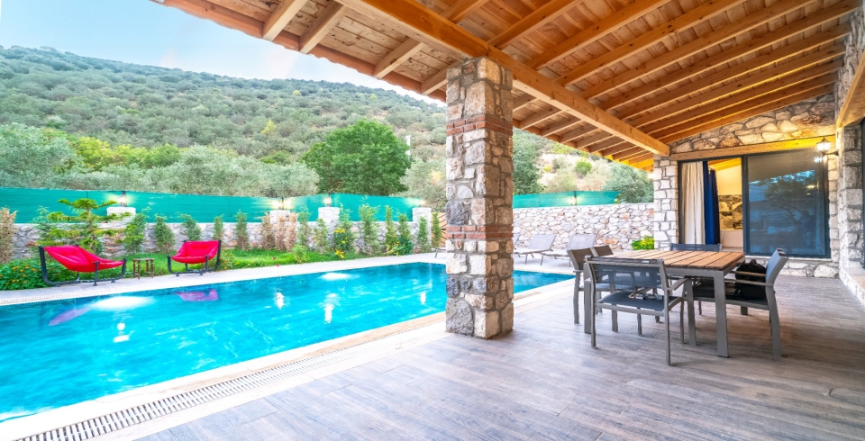 Villa Akar, Muğla’nın Fethiye ilçesi Kayaköy mevkiinde doğayla ve tarihle iç içe huzur dolu bir konumda bulunan, 4 kişi kapasiteye sahip jakuzili ve özel havuzlu lüks bir villadır. Villada 2 yatak odası ve 2 banyo mevcut olup, yatak odalarından biri çift kişilik yatak ve ebeveyn banyosu + jakuzi ile; diğeri ise iki tek kişilik yatak ile donatılmıştır. Modern Amerikan mutfak ekipmanları, geniş salonu, klima, konforlu oturma alanları ve havuz terasına çıkışı bulunan arka bahçesi ile tatil boyunca ihtiyaç duyacağınız her detay düşünülmüştür. Havuz alanı şezlonglar ve güneş şemsiyeleri ile donatılmış; korunaklı yapısıyla mahremiyet ön plandadır.