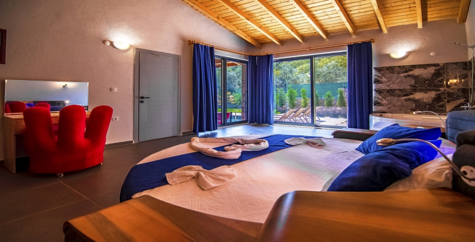 1.Yatak Odası: 1 adet çift kişilik yatak, elbise dolabı, komodin, klima, makyaj masası, jakuzi, banyo ve lavabo bulunmaktadır.