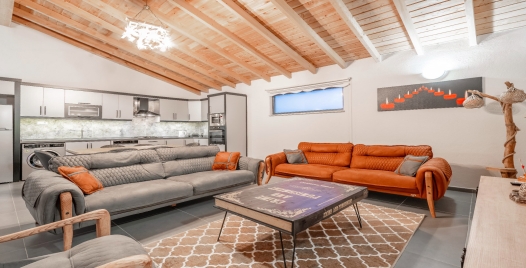 Salon: Özenle döşenmiş salon, modern koltuklar, 4 kişilik yemek masası, LCD TV ve klima bulunmaktadır.