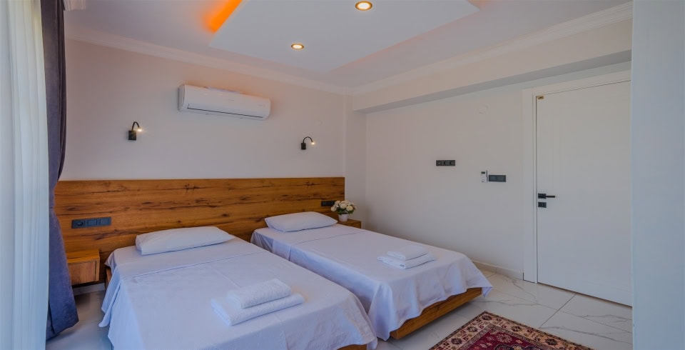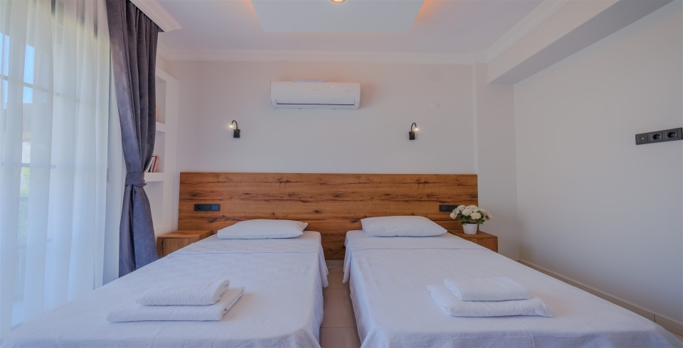 Yatak Odası 3 : 2 adet tek kişilik yatak, elbise dolabı, komodin, makyaj masası, klima, banyo ve tuvalet yer almaktadır.