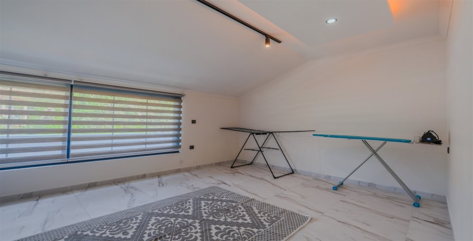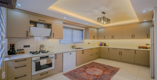 Mutfak: Modern bir Amerikan tipi mutfağa sahip olan villamızın mutfağında bir mutfakta olması gereken tüm araç gereçler mevcuttur. 6 kişi ve daha fazla kişiye yetecek kadar mutfak malzemeleri, bulaşık makinesi, çamaşır makinesi, fırın, ocak, buzdolabı, blender, tost makinesi, çaydanlık ve kettle bulunmaktadır.
