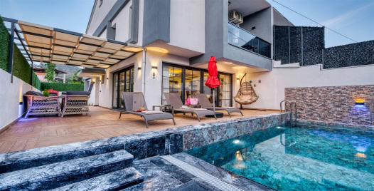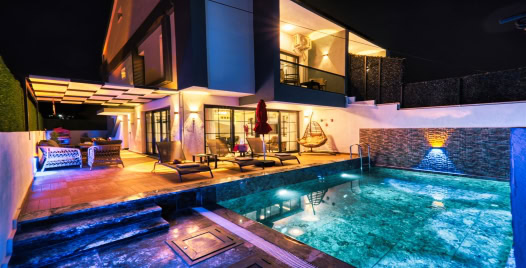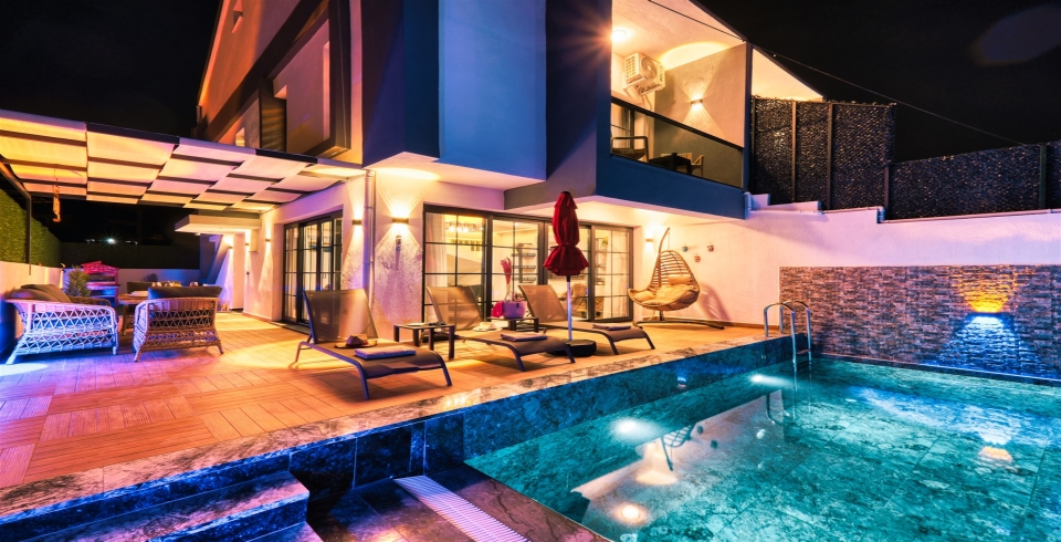 Villa Akasya Fethiye 2, Fethiye Karagedik bölgesinde lüks detayları bir araya getiren özel havuzlu ve jakuzili bir aile villasıdır. 3 yatak odası ve 3 banyosu ile 6 kişilik kapasiteye sahip olan bu villa, geniş ve bakımlı bahçesiyle ailecek keyifli vakit geçirmenize olanak tanır. Korunaklı havuz alanı, modern oturma grubu ve konforlu iç mekanıyla hem dinlenmek hem de eğlenmek isteyenler için idealdir.