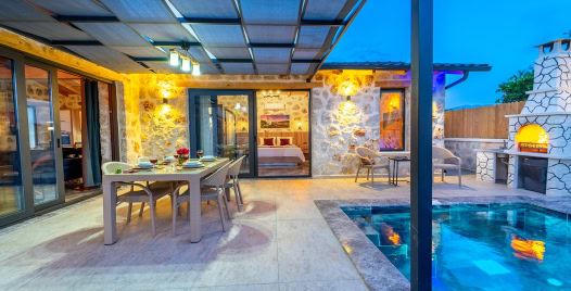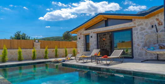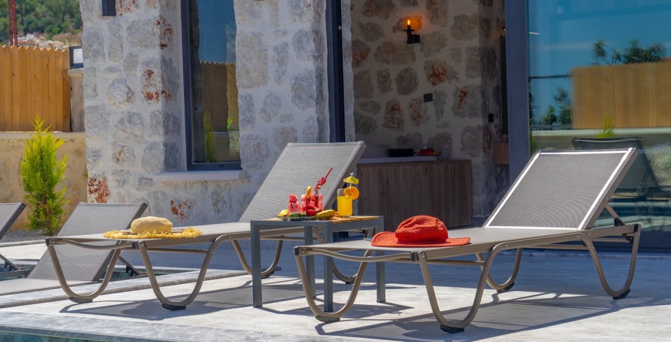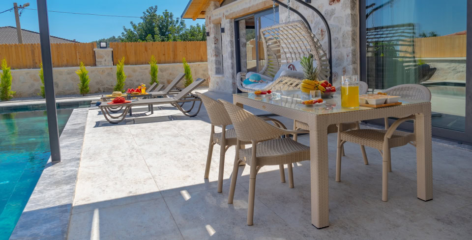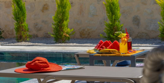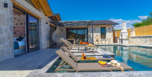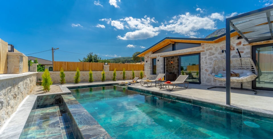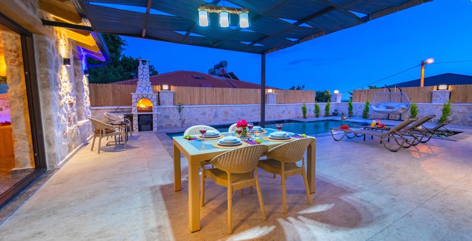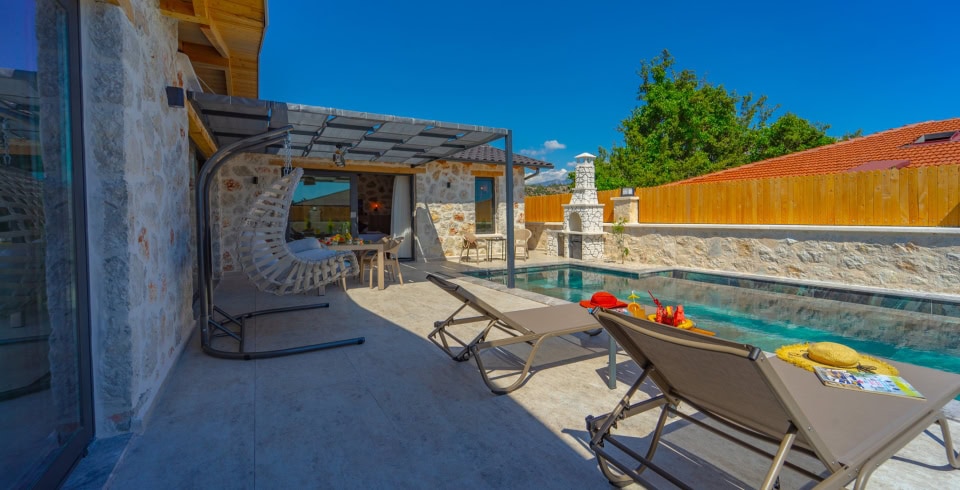 Havuz ve Bahçe : Villamız korunaklı olduğundan dışarıdan görünmemektedir. 1.50 santimetre sığ özel yüzme havuzunun içinde şezlong bulunan bahçemizde ekstra şezlonglar, şemsiye, yemek masası, salıncak ve barbekü alanı bulunmaktadır.