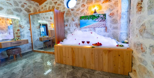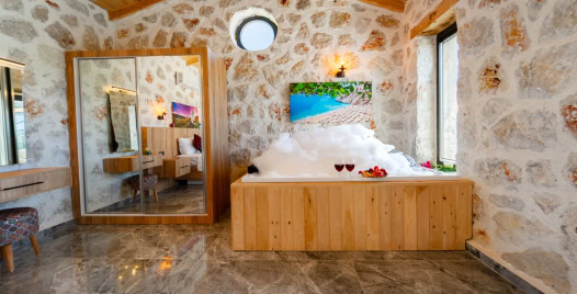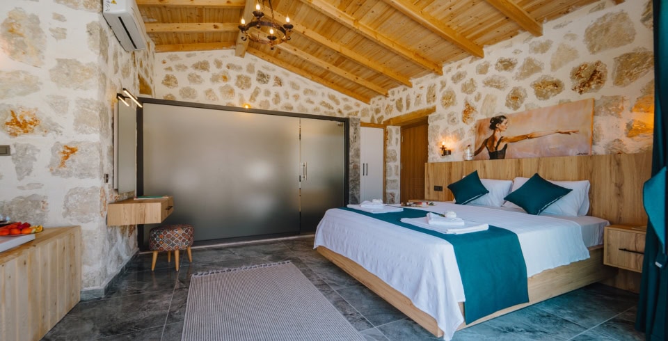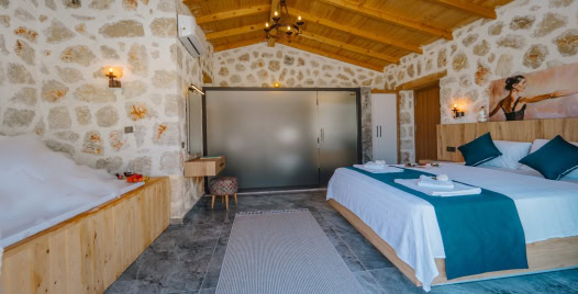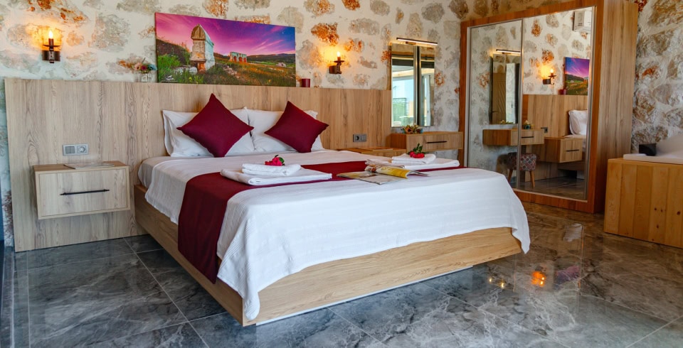 1. Yatak Odası : 1 adet çift kişilik yatak, klima, komodin, makyaj masası, elbise dolabı, jakuzi, banyo ve lavabo bulunmaktadır.