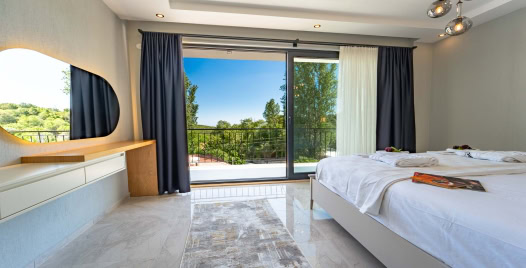 1.Yatak Odası: 1 adet çift kişilik yatak, elbise dolabı, komodin, klima, makyaj masası, jakuzi, banyo ve lavabo bulunmaktadır.