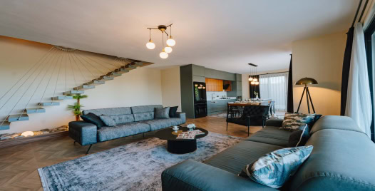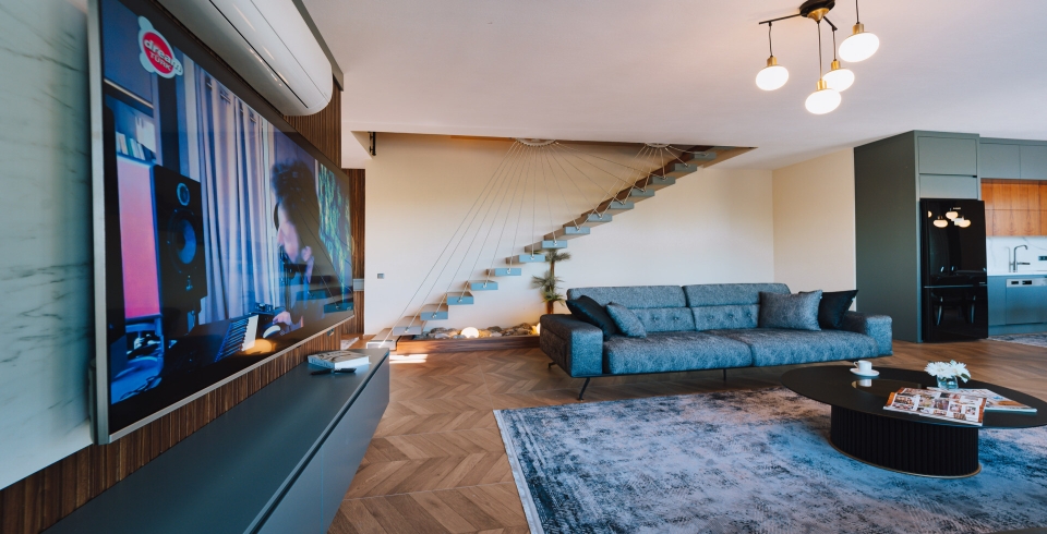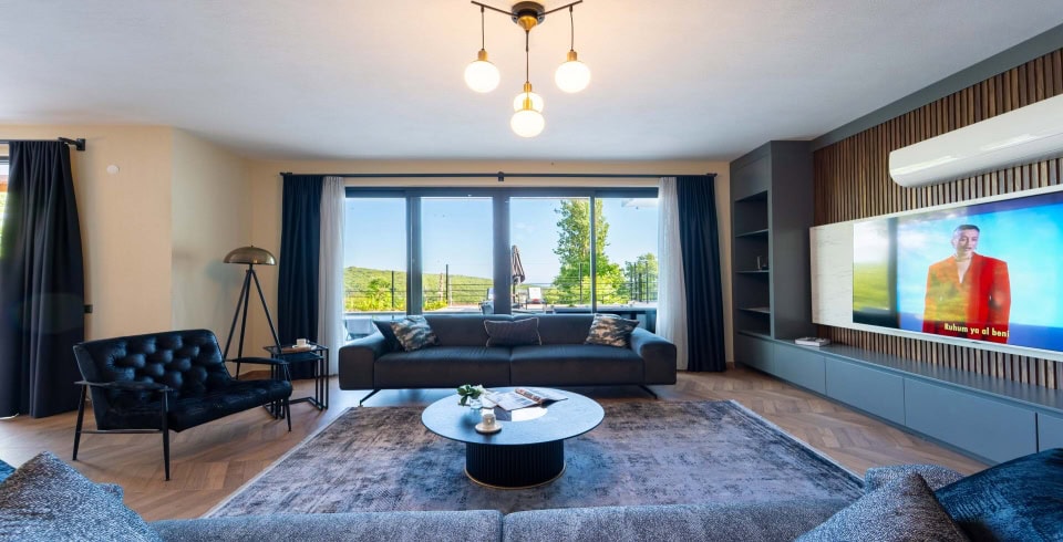 Salon: Özenle döşenmiş salon, modern koltuklar, 6 kişilik yemek masası, LCD TV ve klima bulunmaktadır.