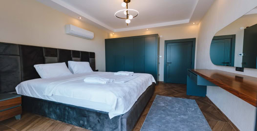 2.Yatak Odası: 1 adet çift kişilik yatak, elbise dolabı, komodin, klima, makyaj masası, jakuzi, banyo ve lavabo bulunmaktadır.