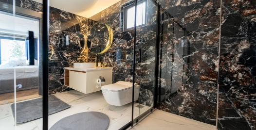 1.Yatak Odası: 1 adet çift kişilik yatak, elbise dolabı, komodin, klima, makyaj masası, jakuzi, banyo ve lavabo bulunmaktadır.